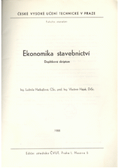 HAČKAJLOVÁ, Ludmila a Vladimír HÁJEK. Ekonomika stavebnictví: doplňkové studium pro stud. fak. stavební. 1. vyd. Praha: ČVUT, 1988, 61 s.