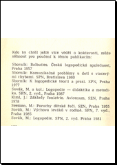 SOVÁK, Miloš. Výchova koktavého dítěte doma i ve škole. 1. vyd. Praha: SPN, 1988. 132 s. Knižnice speciální pedagogiky.