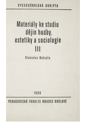 BOHADLO, Stanislav. Materiály k dějinám hudby, sociologie a estetiky: Určeno pro posl. pedagog. fak. 1. vyd. Hradec Králové: Pedagogická fakulta, 1988, 153 s. Učební texty vys. škol.