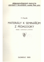 ČULÍK, František. Materiály k seminářům z pedagogiky: Nauka o výchovných potížích : Určeno pro posl. přírodověd. fakulty Univ. Palackého. 1. vyd. Olomouc: Univerzita Palackého, 1989, 142 s.