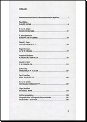 SCRUTON, Roger, ed. Konzervativní myslitelé: výbor esejů z britského konzervativního čtvrtletníku The Salisbury review. Překlad Petr JOCHMANN. 1. vyd. Brno: Centrum pro studium demokracie a kultury, 1994. 196 s. Politika a sociální vědy, 4.