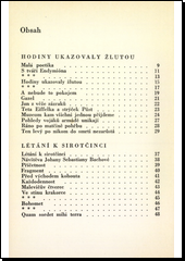 První autorova sbírka zahrnující verše z let 1961-1966 a rozpadající se tematicky do dvou oddílů: I. Hodiny ukazovaly žlutou, II. Létání k sirotčinci. Moderní intelektuální poezie, která se inspiruje kulturními zážitky,svazuje jevy zdánlivě nesouměřitelné a vytváří nevšední, někdy i záměrně humorné metafory.