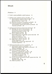 Autoři seznamují se vznikem a vývojem počítačů a s jejich významem v období vědeckotechnické revoluce. Pojednávají o informačních a řídících systémech, o jejich členění a o vlivu počítačů na řízení. Podávají charakteristiku banky dat a její hlavní funkce, zabývají se kontrolou a bezpečností dat a ukazují možnosti aplikace v různých oblastech i další perspektivy automatizace.