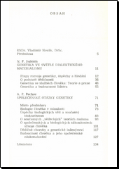 První ze dvou studií podává přehled nejzávažnějších výsledků a otázek současné genetiky. Z hlediska dialektického materialismu a na podkladě genetických poznatků seznamuje s přínosem sovětských vědců k rozvoji genetiky, podstatu tzv. genetického inženýrství, vztah mezi biologickou a společenskou podstatou člověka aj. Druhá studie se zabývá konkrétními důsledky genetiky pro lidskou společnost a zamýšlí se nad budoucností člověka a možnostmi jeho společenského zdokonalování.