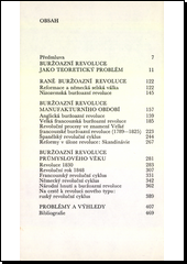 První pokus o syntetizující pohled na evropské buržoazní revoluce, založený na rozsáhlé literatuře, zahrnuje období od německé selské války až po ruskou revoluci r. 1905. Snaží se o typologickou analýzu buržoazních revolucí manufakturního období a buržoazních revolucí průmyslového věku, jejich shod a odlišností a upozorňuje na některé problémy a otázky, které čekají na podrobnější rozbor.