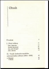 Studie, která se pokouší střízlivě, a tedy bez legend vylíčit politický boj Čechů a Slováků v zahraničí v době první světové války. Poprvé je zde v úplnosti shrnut význam krajanského zahraničního hnutí na počátku války i hnutí čs. socialistů v zahraničí. Velmi cenné je líčení různých směrů v zahraničním odboji, zejména pak Masarykova demokratického proudu a carofilsky orientovaných představitelů některých českých kruhů v Rusku. Studie zahrnuje tytohlavní kapitoly: I. Před válkou, II. Vznik československého zahraničního odboje (1914-1918), III. Válka a revoluce (1916-1917), IV. Vznik ČSR (1918). Průkopnická práce novodobé historiografie, která se se zahraničním odbojem 1914-1918 vyrovnává způsobem více než odpovědným.