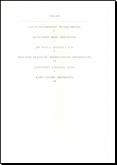 Sborníček obsahuje hodnotíci esej V. Holzknechta Tvůrce epochy, uváděný básní K. Biebla (Beethoven), stať J. Vituly, která po básni F. Branislava (Beethovenova Appassionata) pojednává o skladatelových zájezdech do Prahy,českýchlázní a na moravské a slovenské zámky, stať J. Vituly, která po básni K. Bouška (Beethoven) shrnuje výroky hudebních umělců a teoretiků o vztahu k Beethovenovu dílu a o jeho inspirujících podnětech.