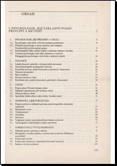 První část učebnice uvádí do psychologie, nastiňujíc základní pojmy, principy a metody, druhá a třetí část podávají základy předmětu pedagogická psychologie, seznamujíce s psychologickými otázkami vyučování a s psychologickými problémy ve výchově.