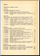 Publikace seznamuje s širokou kulturní a výchovnou prací sovětských odborových organizací. Ukazuje mj. úlohu odborů při uskutečňování kulturní revoluce v Sovětském svazu, hustou síť a typy jednotlivých kulturních institucí a náplňjejich práce. Rovněž rozebírá obsah a metody kulturní a výchovné činnosti, finanční a hospodářské otázky jejího zajišťování a radí při zdokonalování metod organizace a řízení.
