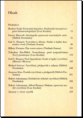 Výběr statí ze současné západní filosofie vědy (v anglicky mluvících zemích) se zaměřuje na dva ze základních problémů tohoto oboru, a to: 1. výstavba jazyka vědy z jazyků observačního a teoretického, 2. adekvátnost logické rekonstrukce explanace (vysvětlení). Ucelenými statěmi jsou zastoupeni přední filosofové vědy ve světě: H. Feigl, G. Maxvell, C.G. Hempel, P. Oppenheim, M. Scriven, J. Kim, R. Ackermann, A. Stenner, H. Putman, Y.Bar-Hillel.Posláním sborníku je informovat českého čtenáře i podnítit k vlastnímu tvořivému myšlení o problematice filosofie vědy.