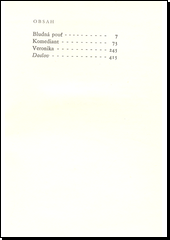 tři historické novely, jež v předivu osudů českých postav z doby těsně po Bílé hoře (Bludná pouť), z doby třicetileté války (Komediant) a z doby rakouského policejního útisku po roce 1848 (Veronika) hledají a nalézají odpovědina živé otázky současnosti.