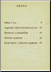 V sličně upraveném špalíčku vycházejí verše inspirované Českomoravskou vysočinou a lidovou poezií, které dnes snad ještě více než v původním literárním tvaru jsou známy v zhudebnění Bohuslavem Martinů: Mikeš z hor, Legenda z dýmubramborové nati, Romance z pampelišek, Otvírání studánek.