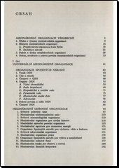 První část informuje o univerzálních mezinárodních organizacích - Organizaci spojených národů a mezinárodních odborných organizacích. Druhá část přináší údaje partikulárních mezinárodních organizací, jako jsoumezinárodníorganizace socialistických, kapitalistických, arabských a afrických států. Nové vydání bylo doplněno a přepracováno tak, aby odpovídalo změnám, k nimž došlo od r. 1971.