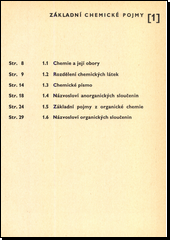 V osmi přehledně rozčleněných kapitolách shrnuje nejdůležitější poznatky z chemie, probírané na ZDŠ, SVVŠ a odborných školách. Najdeme zde stručné informace o základních chemických pojmech, periodickém systému prvků, chemických reakcí, prvcích, sloučeninách, chemických pokusech a chemické technologii. Rychlou orientaci usnadňuje abecedně uspořádaný rejstřík hesel na konci knihy.