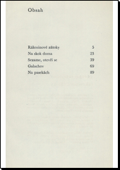 Pět povídek (Rákosinové zátoky, Na skok doma, Sezame, otevři se, Galachov, Na pasekách) mladého prozaika (nar. 1931), který patří mezi mistry současné sovětské povídky. Víc než na děj klade důraz na postižení duší a citů hrdinů, ať už je zachycuje v tišinách anebo peřejích řeky života.