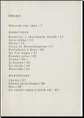 Sbírka básní tematicky čerpajících především z autorovy cesty Italií a Francií, ale i z jeho živé a stranicky uvědomělé účasti na soudobém životě v převratné době, kterou žijeme a spolutvoříme.