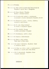 Z dvouletého pobytu v Thajsku vytěžil autor zajímavou knížku o této vzdálené zemi jihovýchodní Asie, v níž se prolíná orientální exotika s moderním způsobem života. Připomíná dávnou historii země, vypráví o královské rodině, o lidovém léčitelství, o thajských slavnostech, zvláštnostech tamní kuchyně, o kultuře, zábavách, o bohaté přírodě i všedním životě obyvatel Thajska.
