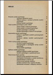 Syntetická informativní práce, jejíž poměrně velký rozsah neubírá výkladu na hutnosti a obsažnosti, je založena na hluboké znalosti starší i nové odborné literatury. Vymezuje předmět, systematiku, vznik a vývoj i aplikace a metody sociální psychologie a její vztah k jiným vědám. Poté probírá z dílčích analytických hledisek tuto vědu "o tom, jak se člověk v sociálních a kulturních situacích utváří a jak v nich působí". Objasňuje způsoby determinace lidské psychiky, prostředky společenského vlivu na psychiku jedince, socializaci individua, strukturu a roli osobnosti, sociální percepci, komunikace, motivace a postoje i prožívání a chování člověka ve skupině a v davu.