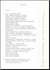 Autor informuje o právech a povinnostech rodičů vůči dětem, seznamuje se způsoby zajištění práv dítěte v době krize manželství a při rozvodovém řízení. Všímá si otázek určení výživného, určování styku rodičů s dítětem, dohodou rozvedených rodičů o výkonu rodičovských práv a povinností, osvojení, právních nároků neprovdané matky apod. Výklad ilustruje příklady ze soudní praxe a citáty ze zákona o rodině.