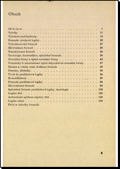 Způsob výběru látky ukazuje, že autor dává přednost algebraickým postupům symbolické logiky, které se už svou povahou výrazně odlišují od běžných způsobů myšlení v životní praxi. Vychází od výrokové logiky a problematikylogických formulí, zabývá se logikou predikátovou, logikou tříd a logikou relací. Probírá relace reflexívní, symetrické a tranzitivní, irreflexívní, asymetrické, intranzitivní a relace typu ekvivalence. Tento typ je důležitýtím, že umožňuje definovat nové objekty a dostává se do popředí nejen v různých vědních oborech, ale i v praktickém životě všude tam, kde jde o zjištění, mají-li dva výroky stejný smysl.
