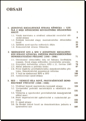 Přehledné dějiny stručně rekapitulují vývoj německého revolučního dělnického hnutí do konce 2. světové války a sjednocovací proces KPD a SPD. Ukazují úlohu SED v etapě protifašistické demokratické výstavby v letech 1946-1949 apřivzniku NDR. Pojednávají o činnosti SED při budování základů socialismu a při výstavbě rozvinuté socialistické společnosti a seznamují s výsledky 9. sjezdu SED.