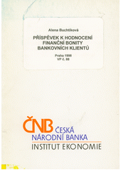 BUCHTÍKOVÁ, Alena. Příspěvek k hodnocení finanční bonity bankovních klientů. Praha: Česká národní banka, Institut ekonomie, 1998. 67 s. VP, č. 88.