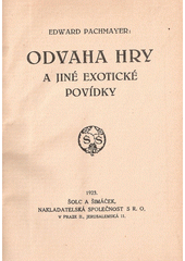 PACHMAYER, Edvard. Odvaha hry a jiné exotické povídky. V Praze: Šolc a Šimáček, 1923. 125 s., 1 l. Matice lidu, Běh 51, Kn. 3.