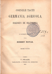 TACITUS, Publius Cornelius a NOVÁK, Robert, ed. Cornelii Taciti Germania, Agricola, Dialogus de oratoribus. Druhé vydání. V Praze: A. Storch syn, 1902. xii, 96 stran.