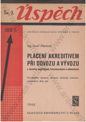 MARTÍNEK, Josef. Placení akreditivem při dovozu a vývozu: s termíny anglickými, francouzskými a německými : pro potřebu dovozců, vývozců, obchodu, průmyslu, peněžnictví, škol, atd. Praha: Samcovo knihkupectví, 1948. 55 stran. Úspěch, svazek 3.