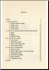 Autor stanovil si za úkol probuditi zájem čtenáře o nauku o zvuku a sluchu a pomoci mu při prvních krocích. Vedle základních pouček o vzniku zvuku a jeho šíření, rozdílu mezi hlukem a hudbou, popisu ušního ústrojí a vymezení možností lidského slyšení, přináší řadu zajímavostí z oboru šíření zvuků v prostoru. V Sov. svazu vypověděli hluku boj, aby vytvořili zdravější pracovní podmínky.