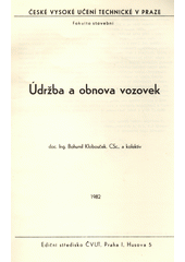 KLOBOUČEK, Bohumil. Údržba a obnova vozovek: Určeno pro stud. fak. stavební. 1. vyd. Praha: ČVUT, 1982, 86 s.