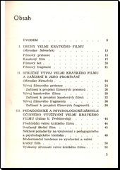 Metodická příručka přináší podněty a rady učitelům základních škol jak vhodně využívat školního filmu, který představuje účinnou pomůcku názorného vyučování. Informuje o druzích velmi krátkého filmu, o jeho vývoji a uplatnění při vyučování vlastivědě, fyzice, branné výchově a přírodopisu. Uvádí rovněž ukázky didaktického využití velmi krátkého filmu a seznam velmi krátkých filmů seřazený podle jednotlivých předmětů.