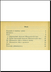 Tato drobná, ale obsahově bohatá knížka vychází z úlohy umístěné ve spise "Liber Abaci", který napsal roku 1202 italský matematik Leonardo z Pisy, známý svou přezdívkou Fibonacci: po něm jsou nazvána čísla, jež mají řadu zajímavých vlastností. Autor probírá posloupnosti, které vedou k těmto číslům, a zabývá se theorií Fibonacciových čísel v souvislosti s theorií řetězových zlomků. Při svých úvahách používá rekurentních procesů a methody uplné indukce s iduktivním přechodem "od n a n + 1 k n + 2" Ke konci věnuje pozornost geometrickým aplikacím. Překladatel akademik Eduard Čech připojil v závěru poznámky, ve kterých upozorňuje na několik nepřesností ve formulaci.