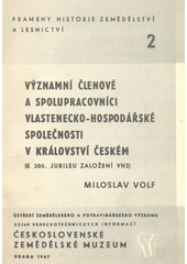 VOLF, Miloslav. Významní členové a spolupracovníci Vlastenecko-hospodářské společnosti v království Českém: (k 200. jubileu založení VHS). Praha: Ústav vědeckotechnických informací :, Československé zemědělské museum, 1967. 224 s. Prameny historie zemědělství a lesnictví, 2.