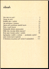 Brožura, určená rodičům dětí do tří let, zaměřuje se na rady a pokyny, jak spojit a vhodně doplnit výchovu v jeslích výchovou v rodině. Seznamuje s denním režimem v jeslích a probírá důležité otázky péče o tělesný a duševnívývoj dítěte, nejčastější onemocnění, poruchy a zvláštnosti v chování. Upozorňuje i na některé situace, kdy je pobyt dítěte v jeslích nevhodný.