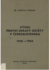 HOLMAN, Jaroslav. Vývoj právní úpravy osvěty v Československu: 1918-1966. 1. vyd. Praha: Kraj. osv. středisko, 1968. 246, [3] s.