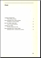 Pět příspěvků našich předních odborníků (Fr. Šorma. R. Richty, L. Tondla. I. Málka a J. Pluhaře) se zabývá postavením vědy v soudobé společenské struktuře, její podstatnou vazbou k socialismu, rozmachem vědeckého výzkumu vsouvztažnosti s úrovní výrobních sil, nutností různých způsobů popularizace dosažených výsledků a spoluprací ČSAV s průmyslovými závody. Publikace přináší cenné podněty k otázkám zvědečtění politiky a etiky vědy. Vyzývá ke stálékonfrontaci socialismu s jeho původním impulsem překonávat lidskou nesvobodu a ukazuje jeho vztah k vědeckotechnické revoluci. Zjišťuje problémy růstu vědy a jejího pronikání do všech oblastí moderního života. Sleduje potřebuneustálého vzdělávání a plodné souvislosti badatelského výzkumu s výzkumem aplikovaným.