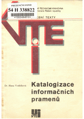 VODIČKOVÁ, Hana. Katalogizace informačních pramenů. Vyd. 1. Praha: UVTEI, 1970. 86 s. Učební texty.