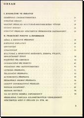 Zcela prakticky zaměřená příručka zprvu zkratkovitě rýsuje historický a kulturní vývoj země a vyjmenovává její přírodní zvláštnosti. Největší část brožury zaujímají instrukce o turistických potřebách a možnostech (včetně přepravních záležitostí), podrobné popisy cestovních tras a informace o jejich nejvýznačnějších místech. Poslední oddíl je malým česko-srbocharvátským slovníčkem pro běžné denní příležitosti. Údaje zachycují stav k roku 1970.