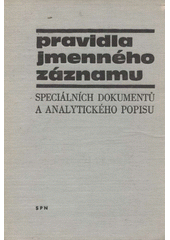 Příručka je doplňkem k Pravidlům jmenného katalogu (1959), odkazy se však vztahují na příslušné články jejich 2. vydání z roku 1969. Po seznámení se základními zásadami přistupuje k rozpracování dosavadních neúplných astručných pokynů pro popis některých speciálních dokumentů a předkládá i zcela nová pravidla pro dosud teoreticky nezpracované druhy této literatury. Stanoví zásady pro tvorbu jmenného záznamu těchto druhů literatury adokumentů: materiálů z konferencí, výzkumných, vývojových, technických, studijních, laboratorních a cestovních zpráv, disertačních, habilitačních a diplomových prací, patentových spisů, norem, firemní technické literatury,zvlášních otisků (separátů), filmů a obrazových záznamů, zvukových záznamů na magnetických pásech, fotografií, printonů, diapozitivů, diafilmů a diapásů. Poslední oddíl je věnován pravidlům analytického popisu článků a statí.