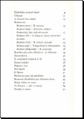 Sbírka pravidelných rýmovaných i volných nerýmovaných veršů, naplněných civilním patosem moderní doby a tvůrců nového světa. Verše, jež se formou rozhovorů obracejí k nitru současného člověka, meditují o víně a životě, těží zproblematiky nově se utvářejících vztahů mezi mužem a ženou a zachycují dojmy z cest mimo vlast i dojmy z české krajiny.