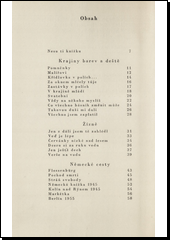 "Nesu ti knížku. Je prostá. / Je prosté, co je v ní. / Přijmete hosta / do svého stavení? / / Soukromé radosti, žaly / hledat jsem nemusel. / Samy se hlásívaly, / jak život šel. / / Nehledám hotové skutky, / hledám, kde pramení / vodopád životů prudký / i stesk a toužení." - Tak charakterizuje autor ve vstupní básni náplň i formu své nové sbírky veršů, v nichž zachytil i prožitky válečných let (v oddíle "Německá cesta") i dojmy z cestování po Sovětském svazu (oddíl "Jediné světlo").