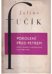 FUČÍK, Julius. Pokolení před Petrem: (stati, články a pozůstalost z let 1938-1942). 1. vyd. Praha: SNPL, 1958. 261, [3] s. Dílo / Julius Fučík, sv. 11.