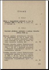 První část uvádí text zákona, druhá souvisící předpisy, směrnice a pokyny hlavního arbitra aj., třetí výběr z rozhodnutí hlavního arbitra. Dodatky otiskují zákon č. 116/1965 Sb., kterým se mění a doplňuje zákon č. 121/1962 Sb.a vyhlášku č. 139/1965 Sb. o úpravě některých hospodářských závazkových vztahů.