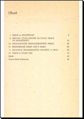 Problematiku charakteru práce a řízení pracovního procesu za socialismu shrnuje autor do logicky utříděného celku. Zabývá se finálním společenským smyslem a socialistickým zespolečenštěním práce, otázkou ekonomických zájmů lidí o práci a problémem soustavy ekonomických podnětů k práci. Pojednává také o vývoji názorů na úlohu práce ve společnosti a o progresívním využívání volného času.