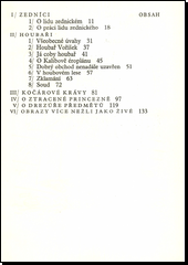 Nové vydání souboru groteskních povídek (Zedníci, Houbaři, Kočárové krávy, O ztracené princezně, O drezúře předmětů, Obrazy více nežli jako živé). Národní umělec zde vypráví veselé příhody z rodných Hrusic a českého venkova,příběhy karikující stav zedníků, houbařů, svět zvířat, také historii "ze života bývalé naší panovnické rodiny", dále grotesky oživující neživé předměty. Povídky zalidněné typickými venkovskými postavami, dýšící dobrou pohodou alidovým humorem.