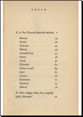 POE, Edgar Allan. Havran. Překlad Vítězslav NEZVAL, překlad Aloys SKOUMAL. 1. vyd. Praha: Mladá fronta, 1959. 89 s. Květy poezie, sv. 10.