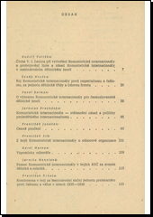 Sborník obsahuje 14 statí, v nichž je vylíčen význam Kominterny pro revoluční orientaci čs. dělnického hnutí, její pomoc ve věcech odborářských, při zajišťování akční jednoty proletariálu a vytváření lidové fronty, v boji proti imperialismu a fašismu. Zařazeny jsou též vzpomínky účastníků kongresů Kominterny a některých dalších revolučních pracovníků.