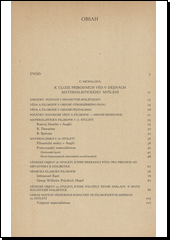 Sborník důkladně informuje o současném stavu i problematice přírodních věd i o tom, jak se v nich projevuje boj materialismu s idealismem. Obsah: C. Michalová: K úloze přírodních věd v dějinách materialistického myšlení; J. Čeleda: Filosofie a soudobá fyzika; J. Čeleda: Podíl chemie na vývoji světového názoru; J. Buchníček: Teoretické problémy v biologii; J. Linhart: O reflexní povaze duševní činnosti.