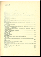 Obsah: H. Smith: Málo známé determinanty patogenity mikroorganismů; D. C. Savage: Přežívání patogenních bakterií na slizničních epiteliích, jejich pronikání do epitelu a množení v tkáních; J. G. Hirsch: Fagocytární obranný systém; A. A. Glynn: Bakteriální faktory, potlačující obranné mechanismy hostitele; H. B. Stoner: Specifické a nespecifické účinky bakteriální infekce na hostitele; J. P. Craig: Enterotoxické enteropatie; W. E. Parish: Poškození hostitele způsobené přecitlivělostí k bakteriím; J. H. Pearce - D. B. Lowrie: Tkáňová a druhová (hostitelská) specifičnost při bakteriální infekci; P. Whittlestone: Patogenita mykoplasmat pro zvířata; P. K. C. Austwick: Patogenita hub; B. A. Newton: Patogenita protozoí; R. Burrows: Raná stádia virové infekce: studie in vivo a in vitro; C. A. Mims: Protivirová obrana hostitele a pozdější schopnost odolávat virové nákaze; R. Bablanian: Mechanismy virových cytopatických účinků; H. E. Webb - J. G. Hall: Posouzení úlohy alergické odpovědi v patogenesi virových onemocnění; F. B. Bang: Specifičnost virů pro tkáně a hostitele.